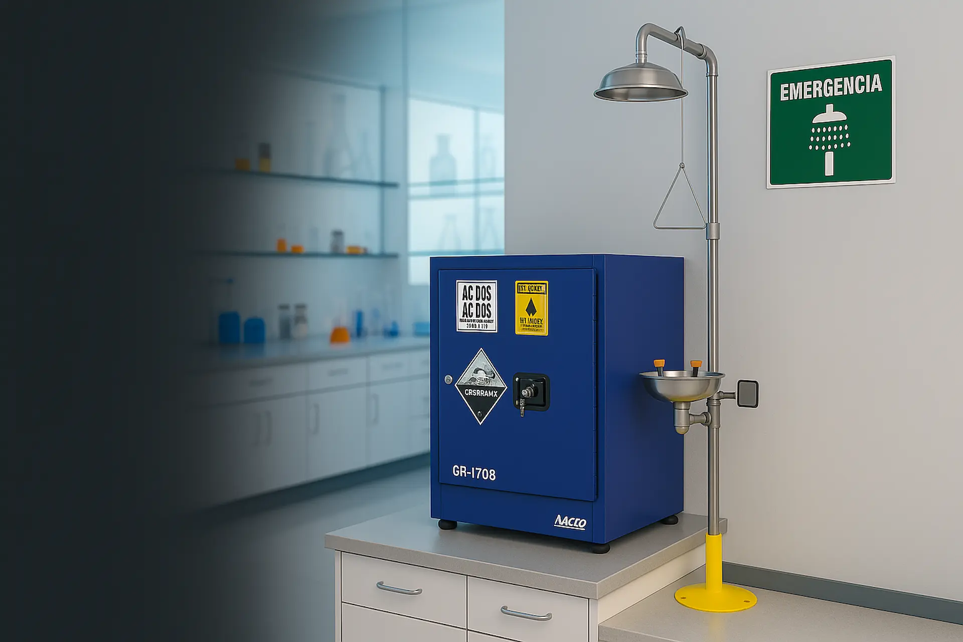 Soluciones diseñadas para proteger a su equipo humano y garantizar condiciones seguras en el manejo de reactivos y emergencias.