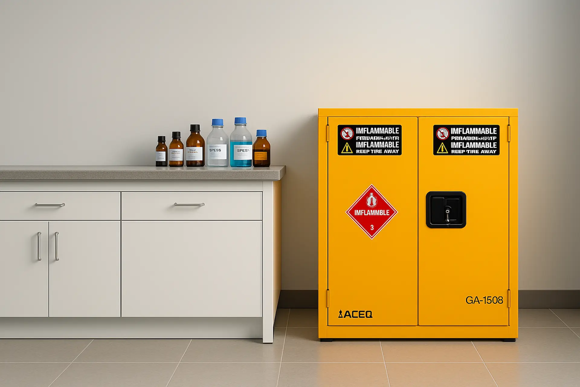 Los gabinetes de almacenamiento de Aceq Laboratorios están diseñados para resguardar reactivos químicos bajo condiciones seguras y ordenadas. Fabricados en Colombia con materiales de alta resistencia y basados en normas internacionales como NFPA 30, UNE-EN 14470-1 e ISO 15190, brindan tranquilidad en laboratorios académicos, industriales y farmacéuticos.